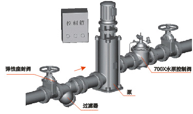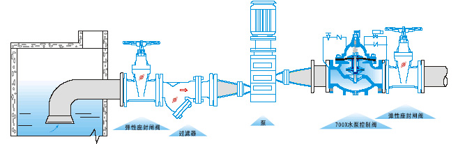 型号: 700X 口径: 50~450mm 压力: 1.0MPa、1.6MPa 材质: 铸钢、铸铁、不锈钢 700X水泵控制阀,是一种安装在高层建筑以及其他给水系统的水泵出口处,防止介质倒流的逆止类阀门。当水泵即将停止供水前,阀门先行缓慢关闭90%左右,防止突然停泵而产生的水锤和水击声;当水泵完全停止后,阀门再完全关闭,防止泵出的水回流,有效地保护水泵,免受回流的冲击而产生反转。该产品是水泵出口必不可少的保护装置。阀门呈流线型设计,通过电磁阀的导控实现准确的启闭,使用安全可靠,有效地防止水锤河水击声,使用寿命长,安装、维修方便。