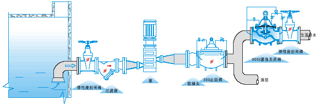 该阀是用于生活小区中消防用水与生活用水并联的供水系统中.当消防用水时,阀门自动紧急关闭,切断生活用水食品店消防用水.当消防结束时,阀门自动打开,恢复生活供水系统比传统的消防单独供水更能节约成本.