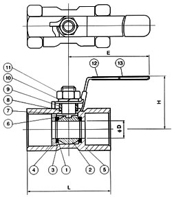 一片式球阀主要尺寸:
