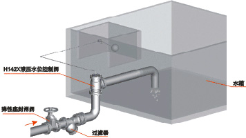 安装形式及注意事项 将该阀垂直固定在进水管上,然后将控制管、截止阀和浮球阀连接旋紧在该阀上即可。H142X液压水位控制阀进水管和出水管连接法兰H142X-4T-A为0.6MPa标准法兰;H142X-10-A为1MPa标准法兰。进水管直径应大于或等于阀门公称通径,出水口应低于浮球阀。浮球阀安装应距离水管一米以上;在水箱内出水管高于水位线处钻一小孔,以防直空回水。使用时,截止阀应全开,如同一水池安装二只以上阀则应保持同一水平面。因主阀关闭要滞后浮球阀关闭约30~50秒,故水箱要有足够的空余容积,以防溢水。为防止杂质、砂粒进入阀内引起工作失灵,阀前应装过滤器。如安装在地下水池,则应在地下泵房安装报警装置。